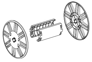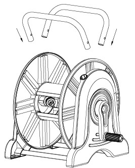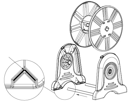 ( 2 ) Insert firmly the metal cross bars into left and right side frames.Place the assembled reel flanges between the assembled reel frames.