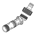 ( 5 ) Insert angled hose adaptor inside drum; attach remaining connector to outside of angled adaptor, on the side frame.