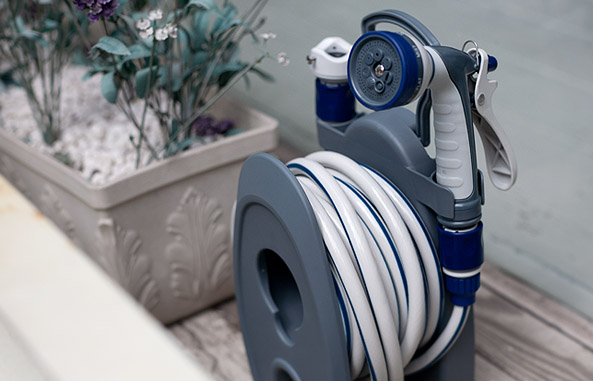 Buy the AquaLean compact hose reel set home, hang it on the wall where closer to the tap, attach the 3/4”hose adaptor to the tap, take the hand spray with the hose out to water your garden or patio in the range of 10M in dia., and then place the hand spray back to the hanging hole on the reel for easy storage to wait for next time watering..jpg)